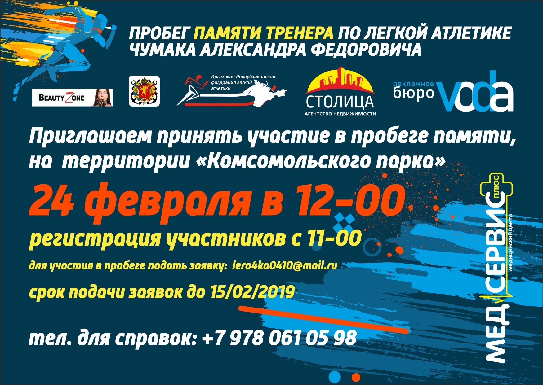 В Керчи 24 февраля пройдёт легкоатлетический пробег памяти Александра Фёдоровича Чумака, - передает Керчь.ФМ