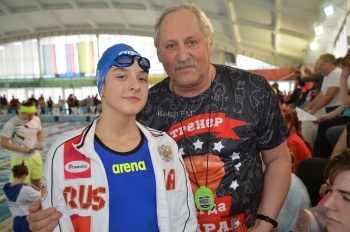Юный дебютант Макаров Роман в упорной борьбе выиграл золотую медаль на дистанции 100 м брасом.
