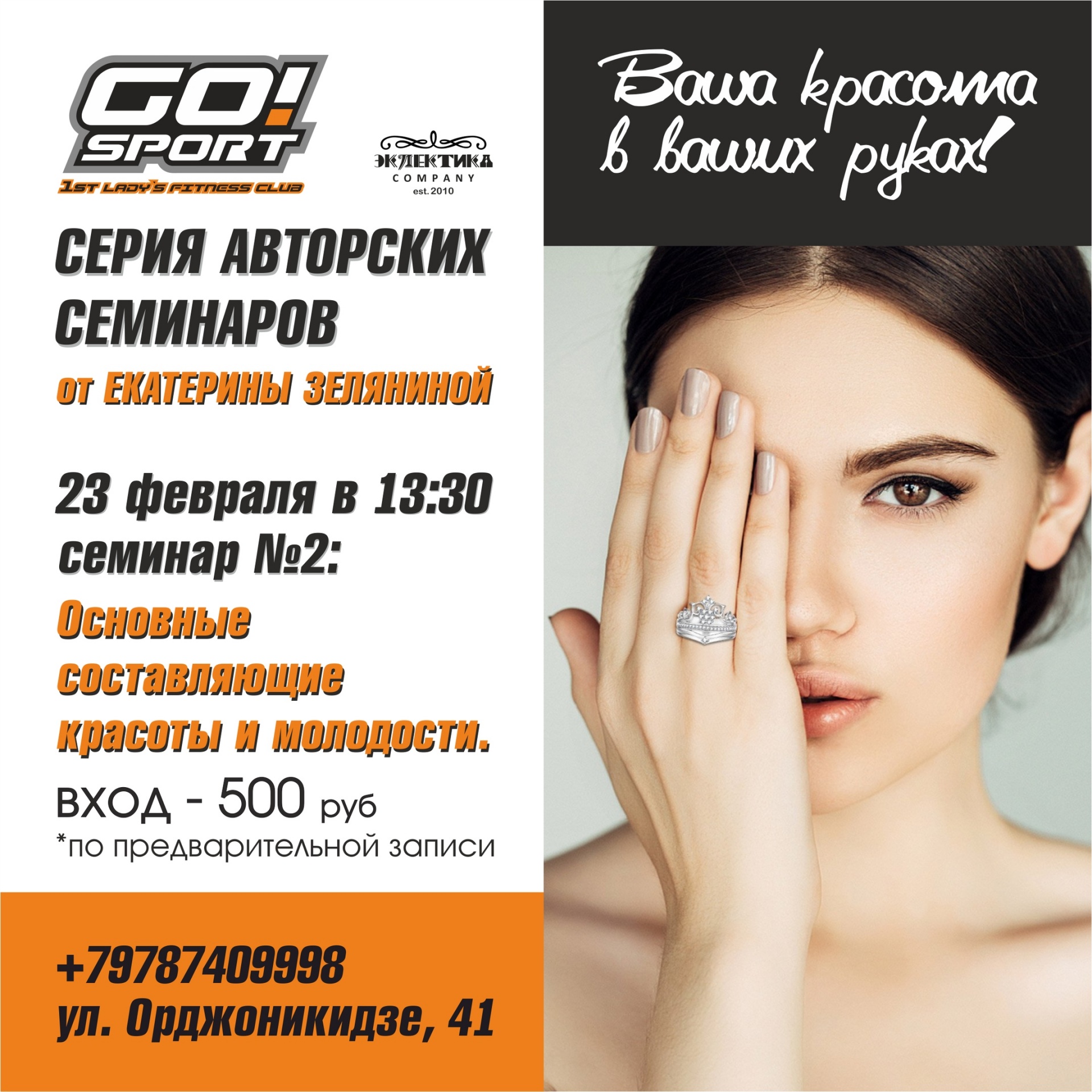 В субботу, 23 февраля, состоится 2 авторский семинар от Екатерины Зеляниной на тему: «Основные составляющие красоты и молодости».
