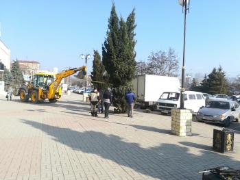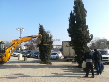 В Керчи после рождественского снегопада, вырвало или наклонило кипарисы. Сначала шли работы по их подвязке. Сегодня, 21 февраля, кипарисы ставили ровно с помощью спецтехники, - передаёт Керчь.ФМ.