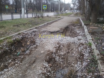 Разрушенный тротуар у керченского политеха в этом году ремонтировать не будут. Как уже во многих местах по городу ответ администрации один - фирма «Мегаватт» ведет там свои работы. Об этом редакции Керчь.ФМ рассказали керчане и прислали ответ замгородского головы Евгения Адаменко.