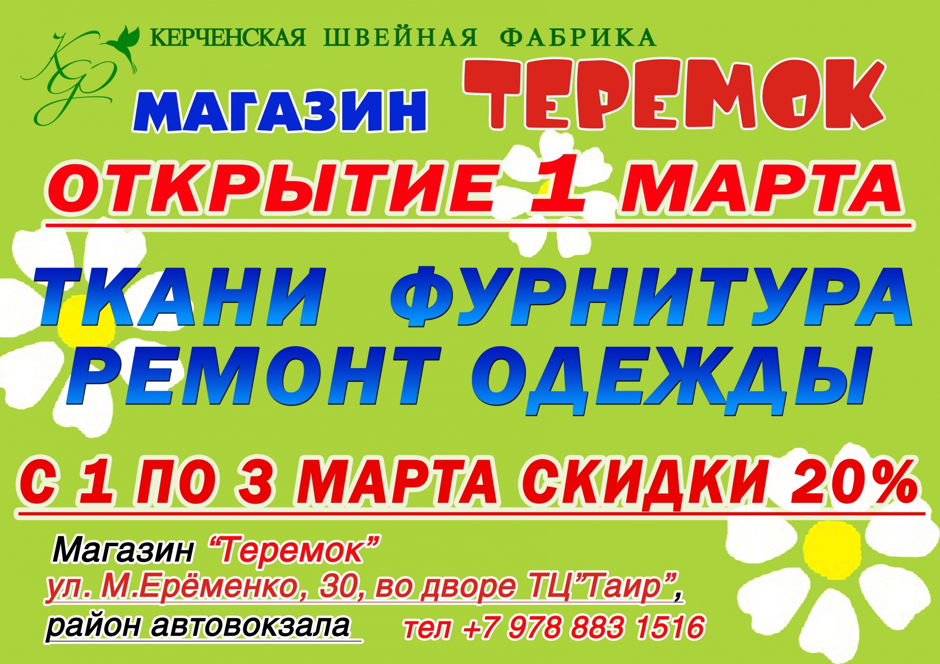 Открытие магазина «Теремок-ткани» и мастерской по ремонту одежды»!