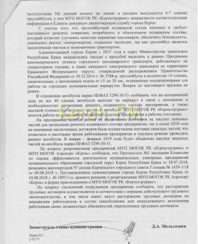 Сегодня, 28 февраля намечено собрание с работниками предприятия по поводу остановки троллейбусного движения в городе; отсутствия денег на предприятии и др. По мнению работников МУП «Керчьгортранс», Администрация города скрывает уничтожение троллейбусного парка в Керчи. И на все обращения присылает один и тот же ответ: директор отвечает требованиям квалификации, троллейбусный состав изношен и требует обновления. Ответы от курировавшего до отстранения Аксеновым замглавы администрации Дилявера Мельгазиева и начальника транспортного управления прислали в редакцию.