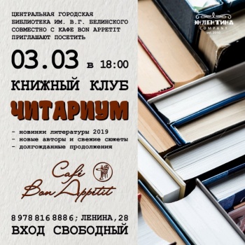 3-го марта при поддержке центральной городской библиотеки В. Г. Белинского в кафе Bon Appetit впервые откроет свои двери для всех желающих книжный клуб - "Читариум". Книжные клубы — это сообщества читателей, которые собираются вместе для обсуждения книг.