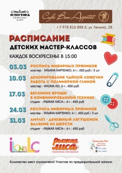 Полное расписание мастер-классов в марте (запись открыта):