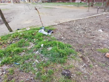 «Ну мы никак ни хотим работать, посмотрите во что превратился двор по Еременко 38, 39, 40!Он превратился в стоянку для машин жлобных водителей, которые приезжают отовариваться на центральный рынок и которые потом развозят месиво грязи по всему двору. Ну можно, конечно, вкопать столбики, что бы ограничить заезд машин на газоны, детскую площадку, а потом и облагородить дворовую территорию, НО МЫ НЕ ХОТИМ!