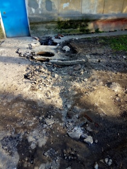 Хочу заметить, что расковыряв остатки асфальта и перепахав колесами клумбы, при замене трубы возле третьего подъезда, специалисты УК оставили после себя кучи грязи и не засыпанный и ничем не огороженный канализационный люк, в который могут провалиться дети.