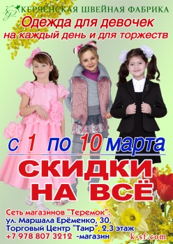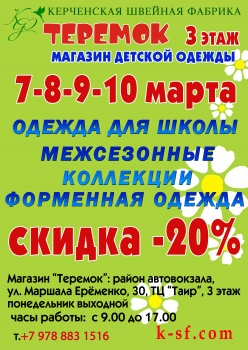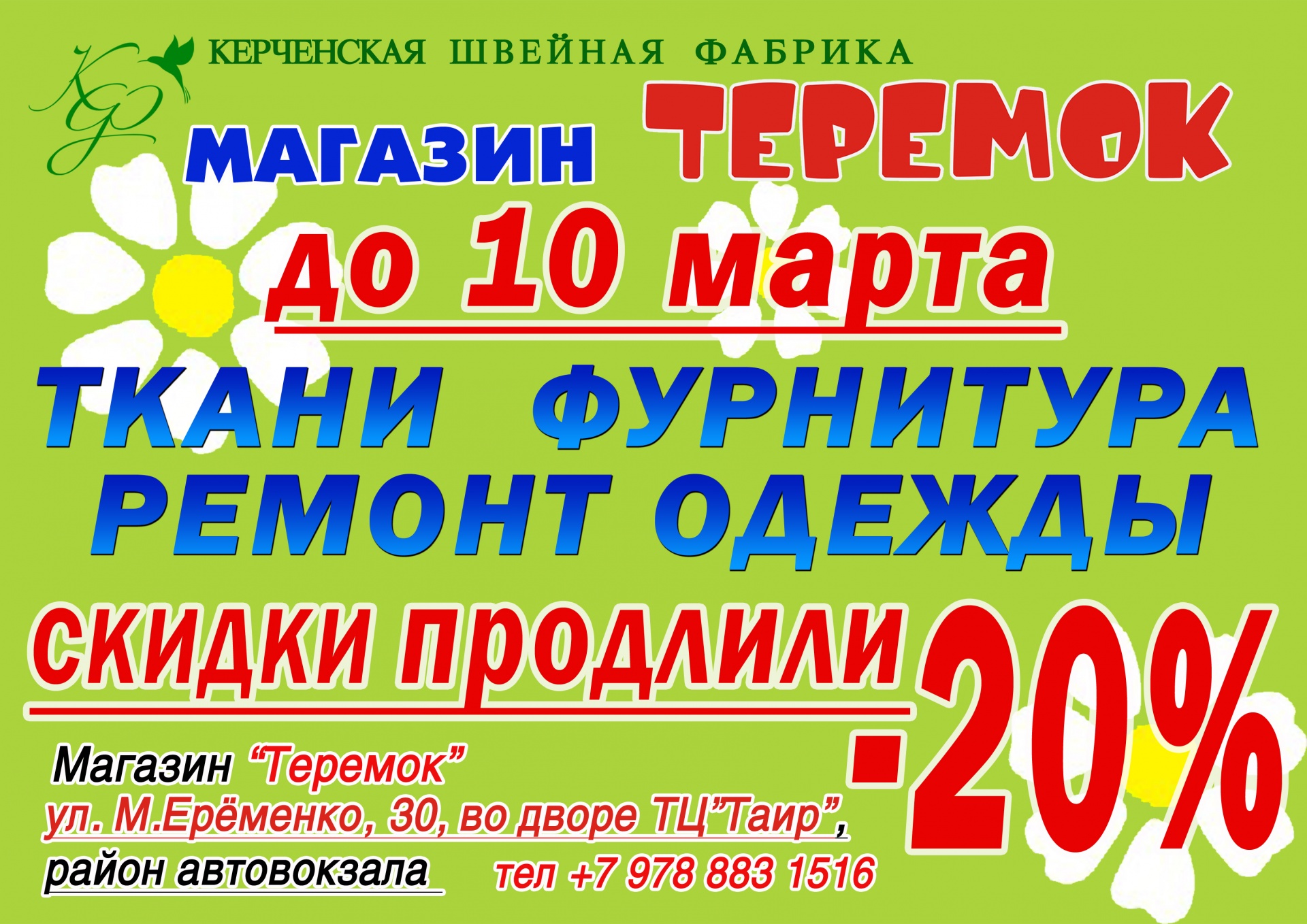 В СЕТИ МАГАЗИНОВ ТЕРЕМОК! 7-8-9-10 МАРТА! СКИДКИ НА ВСЕ!