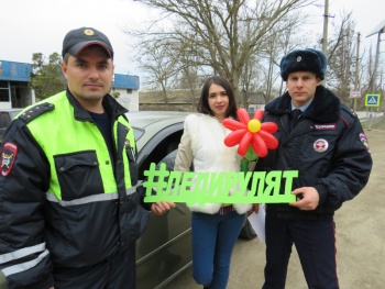 С улыбкой и дружественным приветствием инспекторы ДПС останавливали автомобили под управлением дам, и, на удивление водителей, не просили предъявить документы. В этот день дорожные полицейские обратились к автоледи только с добрыми пожеланиями, вручили участницам дорожного движения поздравительные открытки-памятки, яркие цветы и оригинальные наклейки.