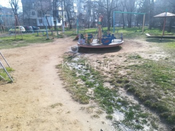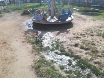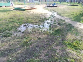 В Керчи больше месяца на детской площадке на Орджоникидзе, 120 течет питьевая вода. В этом месте водоканал часто проводит свои работы. Об этом Керчь.ФМ сообщили жители района