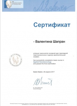 В Центре современных медицинских технологий «АКВА МЕД МАРИН» ведет прием высококвалифицированный врач - невролог Шапран Валентина Васильевна, имеющий Сертификат Международной Академии по гомотоксикологии (IAH).