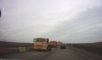 В редакцию Керчь.ФМ прислали видео, снятое сегодня керчанином на трассе «Таврида». На нем видно, что дорожное полотно новой части дороги провалилось в районе поворота на пгт Ленино.