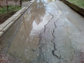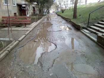 В редакцию Керчь.ФМ обратились жители дома по Олега Кошевого, 20. На их внутридворовой дороге всегда стоит вода. Глубокие и непроходимы лужи не высыхают с осени до самого лета. А теперь начал рушиться подпорный бордюр, который держит землю у детской площадки.