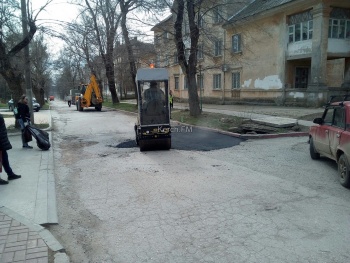 В Керчи 22 марта, по ул. Славы ремонтировали ямы, - передаёт Керчь.ФМ. Асфальтировали те выбоины, размер которых достигал нескольких метров.