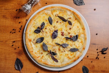 - каждый понедельник скидка 43% на пиццы и пироги при заказе в кафе или на самовывоз;