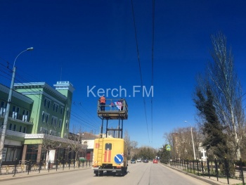 В Керчи 30 марта  Адмиралтейский проезд и улицу Кирова подготавливают к предстоящим праздникам. Рабочие с помощью спецтехники украшают улицы города праздничной атрибутикой, - передает Керчь.ФМ