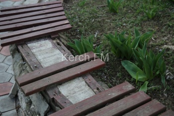 В Керчи лавочка около здания администрации города находится в ужасном состоянии. Об этом Керчь.ФМ сообщили постоянные читатели.
