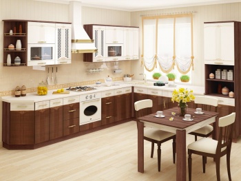 Кухни с продуманным функционалом, повышающим удобство эксплуатации. Другое значимое достоинство заключается в использовании качественных современных материалов, не требующих дополнительного ухода. Доводчики обеспечивают мягкое и плавное закрывание дверей. Регулируемые ножки столов помогают нивелировать возможные неровности пола. Широкий ассортимент модульного ряда обеспечивает достойный выбор, позволяющий учесть при компоновке размеры и особенности будущей кухни. Срок гарантии на всю корпусную мебель - 8 лет.