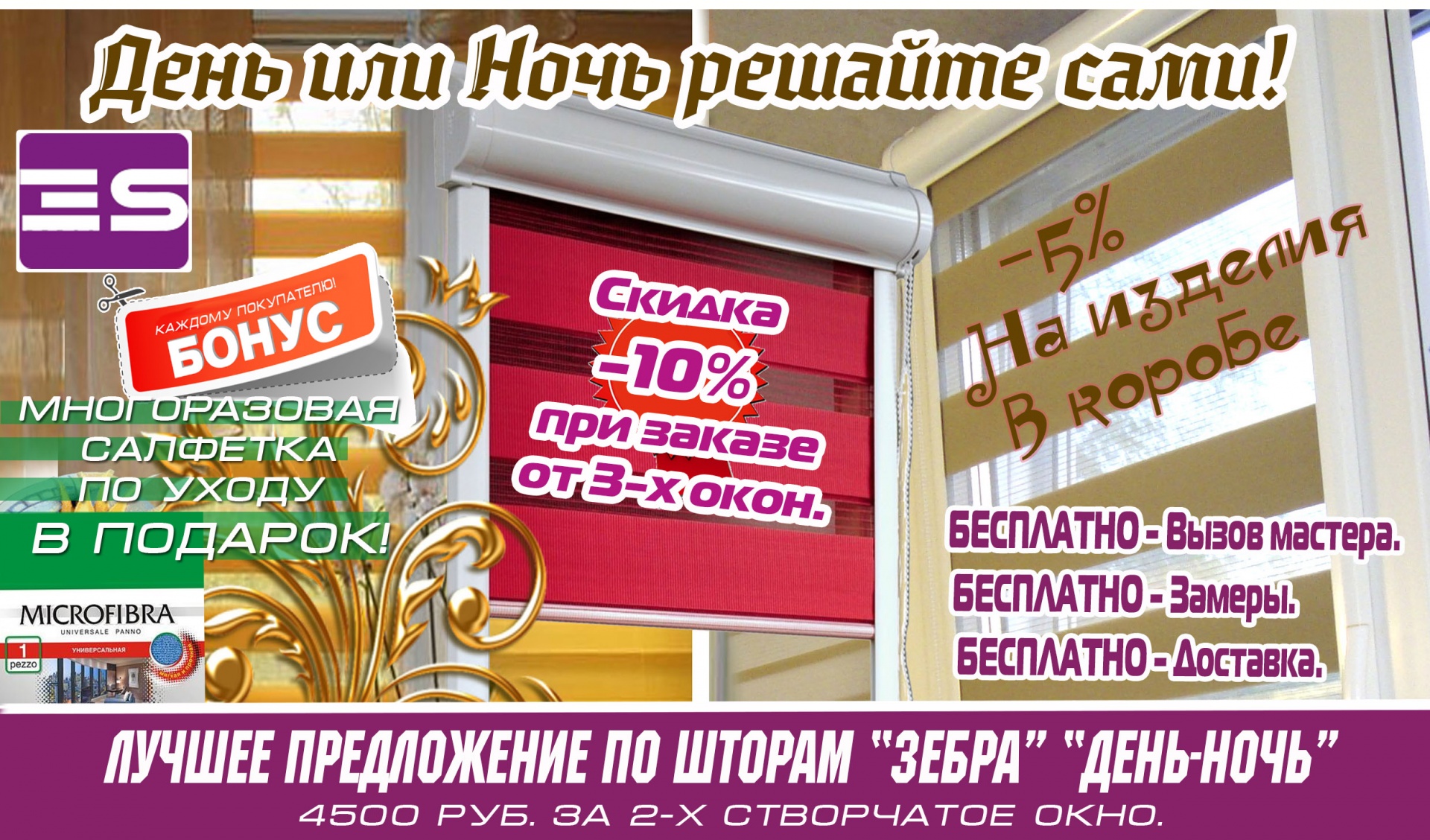 День-Ночь - 4500 руб. за стандартное окно. (два полотна)