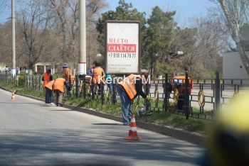 В Керчи 9 апреля на улице Чкалова люди в жилетах красят бордюры. В этот раз бордюры перекрашивают в бело-черные, - передает Керчь.ФМ.