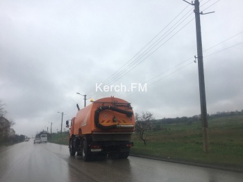 В редакцию Керчь.ФМ постоянная читательница прислала фото техники, которая 12 апреля утром во время дождя, чистила и мыла обочины дорог на Куль-Обинском шоссе. Машина двигалась медленно и с помощью щеток и воды чистила обочины.