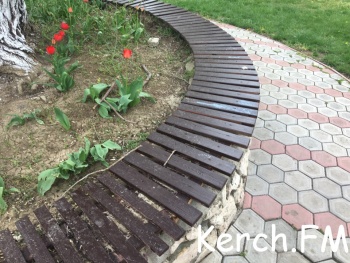В Керчи отремонтировали лавочку около здания администрации города