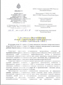 В течение суток 20 апреля в Крыму ожидается усиление северо-восточного ветра до 20-25 м/с, ночью и утром 20 апреля в южных, центральных и восточных районах Крыма ожидается сильный дождь со снегом. Об этом сообщает пресс-служба МЧС в своем экстренном предупреждении, - передает Керчь.ФМ.