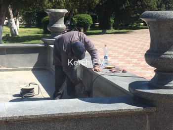 В Керчи 24 апреля в сквере Мира фонтан подготавливают к включению. Рабочие с помощью спецтехники производят работы по удалению известкового налета на плитке фонтана, - передает Керчь.ФМ.