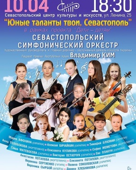 В Севастополе более 10 лет проводится мероприятие - концерт молодых талантливых музыкантов-исполнителей «Юные таланты твои, Севастополь» в рамках проекта «Дети детям». Идея создания этого музыкально-просветительского проекта принадлежит заслуженному деятелю искусств, лауреату государственной премии Республики Крым, главному дирижеру и руководителю Севастопольского государственного симфонического оркестра Владимиру Киму.