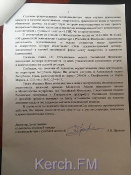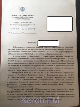 Я и написала. Мне даже ответ пришел, там в ответе написано, что у меня есть право на бесплатного адвоката, но Минюст этим не занимается и дали мне адрес Симферопольской коллегии адвокатов. Правда, Минюст написал, что в последнее время с такой просьбой поступило очень много обращений, поэтому они обратились в Следственный комитет.