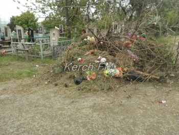 Мусор, ветки и венки в куче – так выглядит керченское кладбище