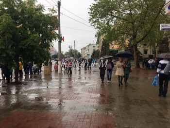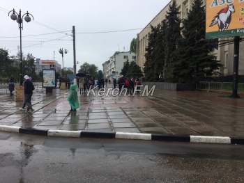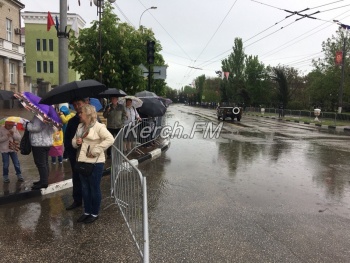 В Керчи 9 мая, на центральных улицах города достаточно мало людей. Парад, который начнется с минуты на минуту, пришли смотреть немногие, дождь распугал зрителей, - передает Керчь.ФМ