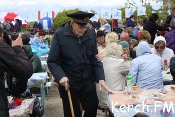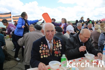 В Керчи после торжественного митинга ветеранов пригласили отведать полевую кухню. Гостей ждала не только каша, но и «100 грамм», а также минералка и овощи, - передает Керчь.ФМ.