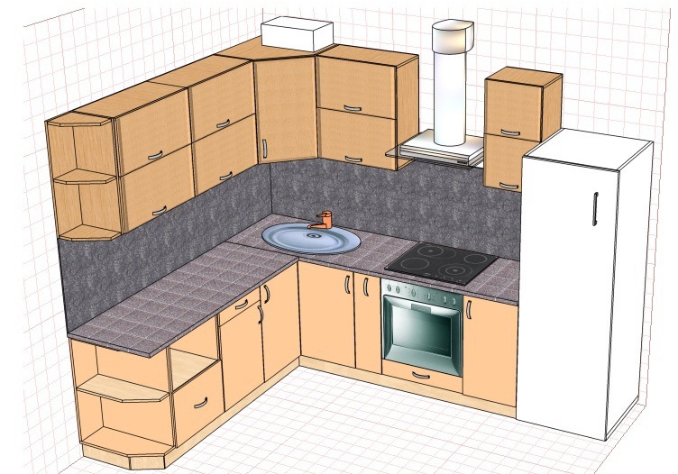 L-образная — универсальный вариант планировки, подходящий практически для любого помещения. Но наиболее выигрышным он станет для квадратных кухонь среднего размера 8-10 м.кв.