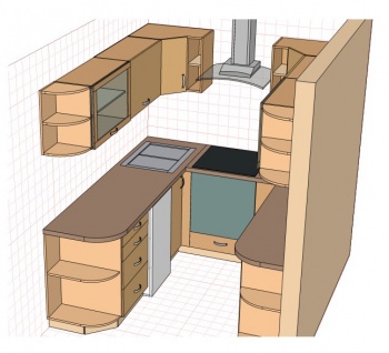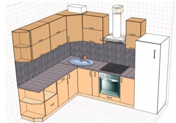 • Для начала Вам необходимо представить месторасположение рабочей зоны, бытовой техники, мест хранения посуды, продуктов, моющих средств и пр.