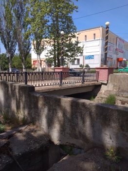 «Этот мостик - напротив бывшей бани рядом со стадионом. А рядом с ним вот такая большая провалина, сквозняком в речку, прямо на дорожке вдоль речки. Дырка глубокая и достаточно большая. Есть опасность получить травму, а то и убиться, любому, кто вечером будет там проходить .