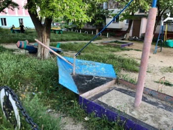 «То, что все придомовые территории и обочины в траве, мы вроде привыкли. Но детская площадка! Это что же такое? Травы нет только там, где ее вытоптала детвора. Старые конструкции и так опасные, так еще и рассадник клещей здесь появился», - написали керчане