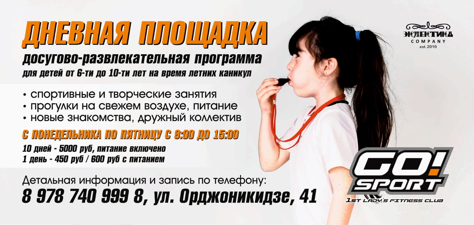 Дневная площадка от GO!Sport — это прекрасная возможность для Ваших детей провести летние каникулы в городе с максимальной пользой для физического и эмоционального здоровья.