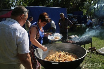 На месте поставили сцену, где для всех желающих выступили творческие коллективы города. Также, керчан и гостей города в рамках мероприятия угощали пловом.