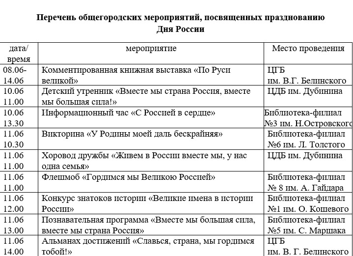 План мероприятий ко Дню России в Керчи