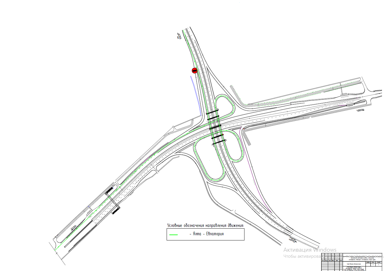 Транспорт, следующий со стороны Ялты в направлении аэропорта и Евпатории, должен будет проехать мимо первого съезда по основному ходу и развернуться на развязке в соответствии с установленными указателями.