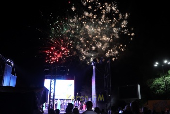 Фейерверк запустили во время выступления коллектива Краснодарской филармонии, которые в том числе пели «Червону руту» на украинском языке, танцевали цыганский танец, чечетку и многое другое.
