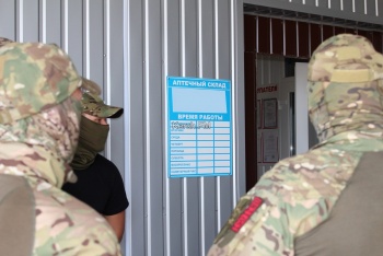 При силовой поддержке ОМОНа оперативники ОЭБ И ПК крымской транспортной полиции нагрянули в аптечный пункт расположенный в селе Фонтанное. Ассортимент аптеки поразил силовиков тем, что большинство препаратов находилось на стеллажах практически в одном экземпляре. Не смотря на противодействие руководства предприятия, которое якобы потеряло ключи от технических помещений, в ходе обыска правоохранителям удалось найти и изъять из незаконного оборота еще 3 119 емкостей, аналогичных тем, что прибыли по железной дороге. Однако, на идентичных по дизайну этикетках, того же производителя, значился уже другой препарат - «лекарственное средство, медицинский антисептический раствор», с содержанием спирта 90%. Отдельной партией располагались на паллете в упаковках 840 емкостей по 0, 33 литра с тем же содержанием спирта.