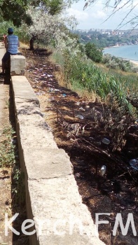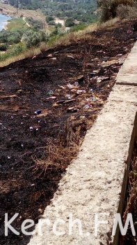 Керчане просят коммунальщиков и администрацию города обратить внимание на парапет на обрыве в Аршинцево. Сгоревшая трава, бутылки и мусор - это вид на море, - передает Керчь.ФМ