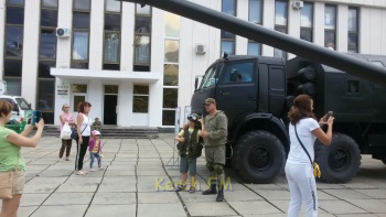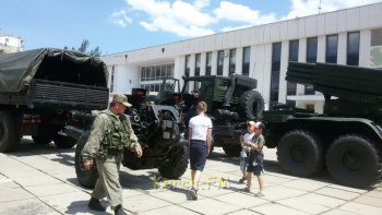 Из взрослых на форуме - выставке были замечены только родители. Зато дети наигрались с военной техникой вдоволь. Самым интересным развлечением для местных детей было пофотографироваться в амуниции и пощелкать электрошокером. Предприимчивые продавцы сразу стали торговать казацкими шапками, свистульками и погремушками, а также патриотическими футболками.