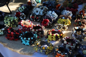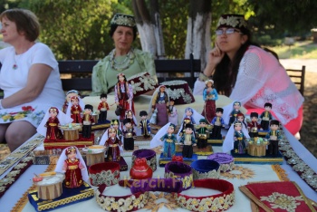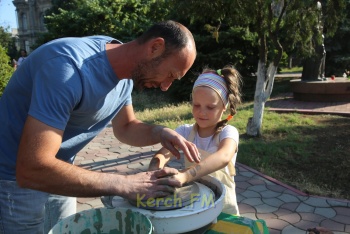 В это же время у фонтана дети подходили к столам мастеров и могли посмотреть, а некоторые и поучиться, как лепить из глины или ткать на ткацком станке.