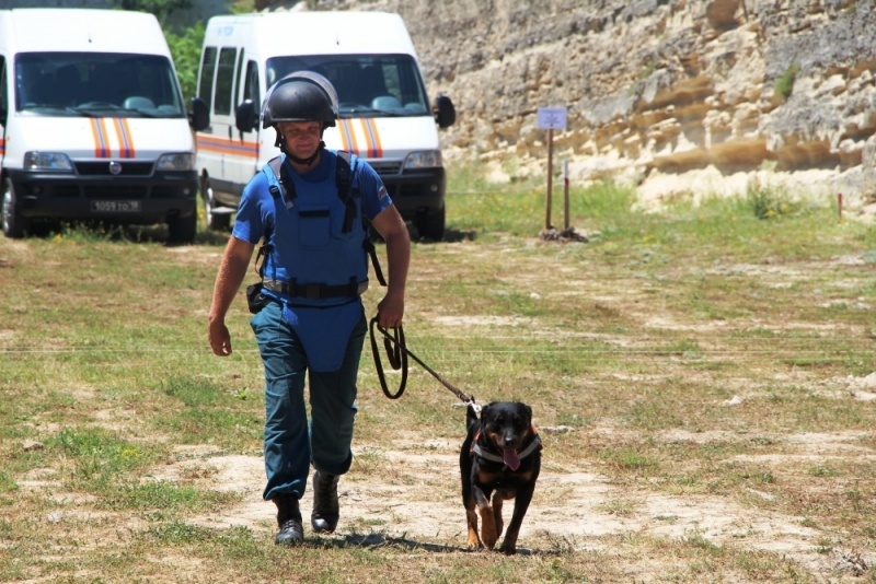 Работы ведут 25 специалистов, в составе которых - пиротехники, кинологи, водолазы, специалисты робототехнического управления, медицинский сотрудник, а также 4 единицы специализированной техники. Каждый спасатель группы имеет огромный опыт работы по обезвреживанию взрывоопасных предметов как на суше, так и на акватории.