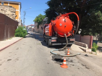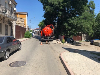 В Керчи на ул. Театральной 3 июля снова течет канализация по дороге, - передает Керчь.ФМ.  Улицу частично перекрыли для проезда транспорта на время проведения работ.