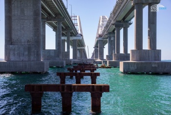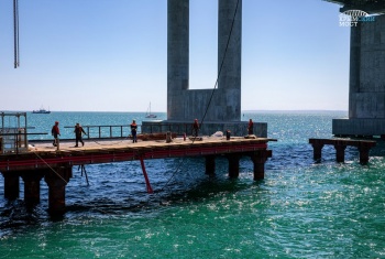 В Керченском проливе демонтируют рабочие мосты, которые соединяли все участки стройки самого длинного моста России. Сборно-разборные металлические конструкции 3, 5 года обеспечивали перемещение и работу тяжелой техники в акватории и бесперебойную доставку материалов на протяжении всех 19 км. Об этом сообщает инфоцентр «Крымский мост», - -передает Керчь.ФМ