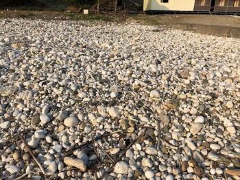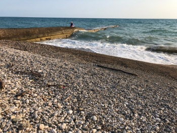 Вечером отправились на пляж, который уже был пустым. На некоторых пляжах галька очень крупная и сложно заходить в воду и выходить из нее.